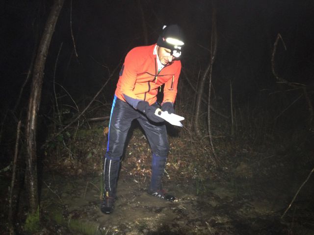 Les quatre valeureux orienteurs, Emilie, Christine, Stéphane et Thierry s'entraineront ce soir sur un exercice de course sur balises fictives. Par groupe de deux chacun enmène son coéquipier à tour de rôle sur la balise suivante. Ce fut un super moment technique et convivial dans une nature détrempée comme une éponge.