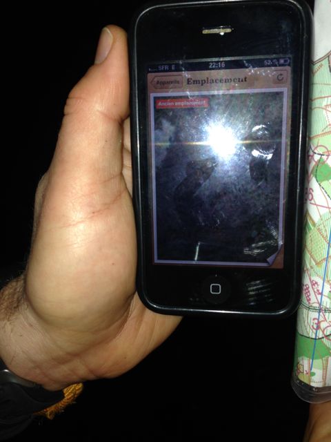 Un point au milieu de la forêt sur la carte sat, zoom, rotation et avec l'aide de la carte CO nous arrivons à déterminer l'emplacement approximatif situé entre le poste 7 et 8.